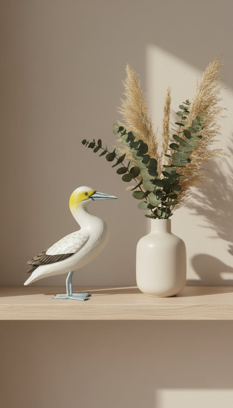 Fou de Bassan en bois massif, une figurine de 25 cm qui capture l'élégance naturelle de cet oiseau marin emblématique. Parfait pour les amateurs de décoration côtière ou les passionnés de faune bretonne, cette pièce artisanale apporte une touche authentique à votre intérieur. Le bois travaillé avec soin révèle les détails caractéristiques du fou de bassan, en faisant un objet de conversation unique. Idéal pour embellir une étagère, un bureau ou un salon.